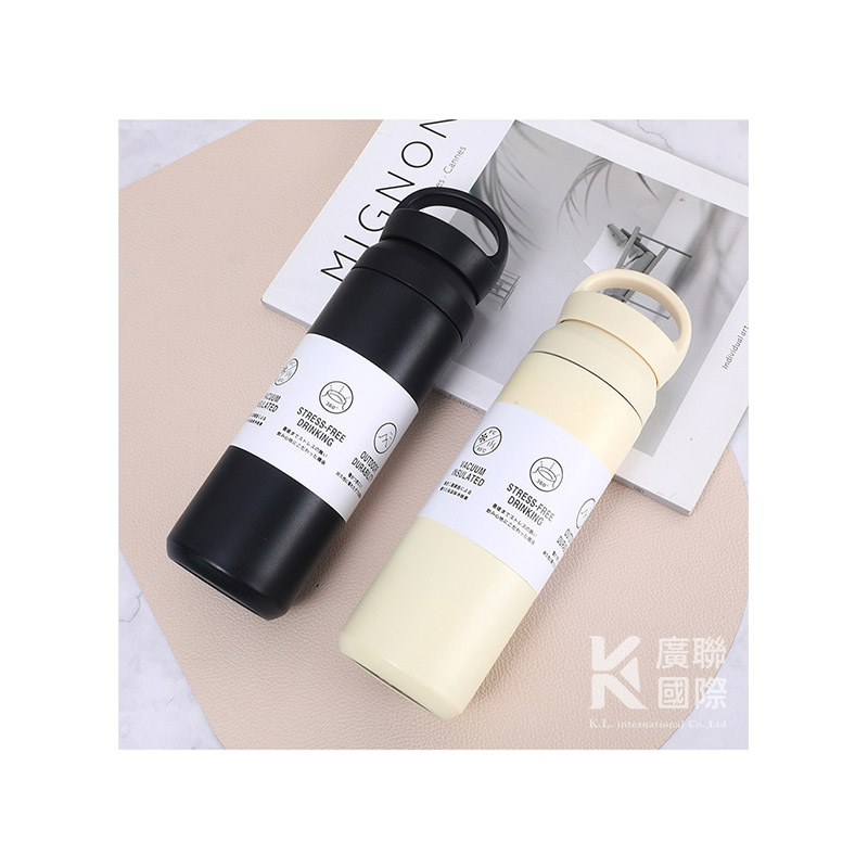 質感不鏽鋼保溫杯,附提把瓶蓋方便攜帶