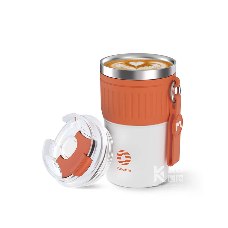 簡約設計質感咖啡杯,直飲杯蓋設計,杯身附掛繩方便攜帶