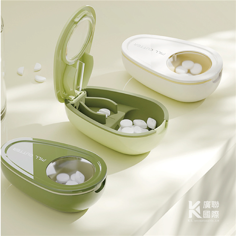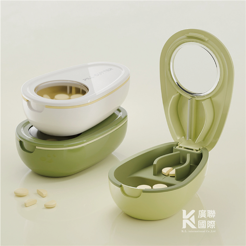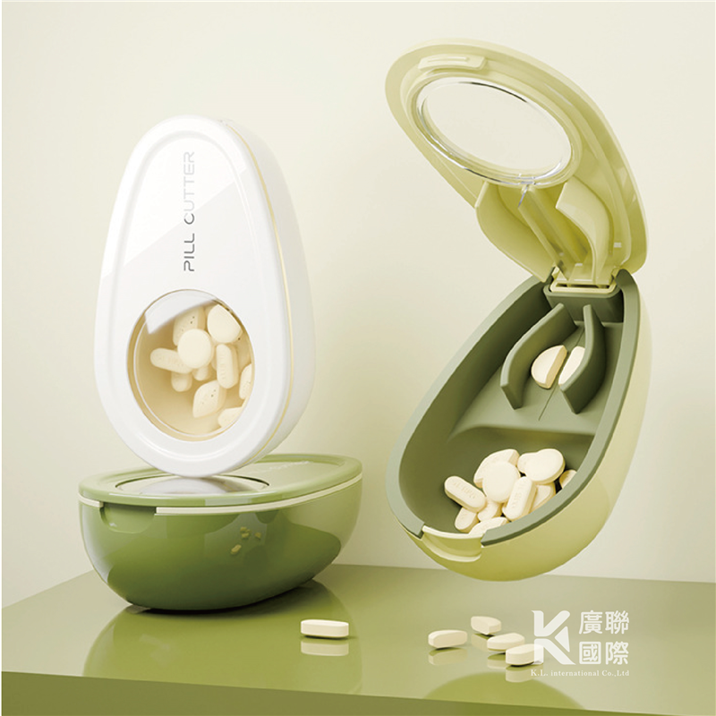 酪梨造型切藥收集藥盒, 食品及材質製作, 迷你小巧好攜帶,盒裝密封防潮, 保存藥品不易變質。 內附切藥器,使用不銹鋼刀片,更利於吞嚥藥片。 可客製化設計,加印企業LOGO,歡迎洽詢!